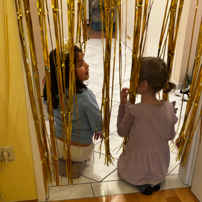 Du kommst mit deinen Gästen zu mir ins Atelier, wo ihr durch meinen Zaubervorhang in den Partybereich kommt.