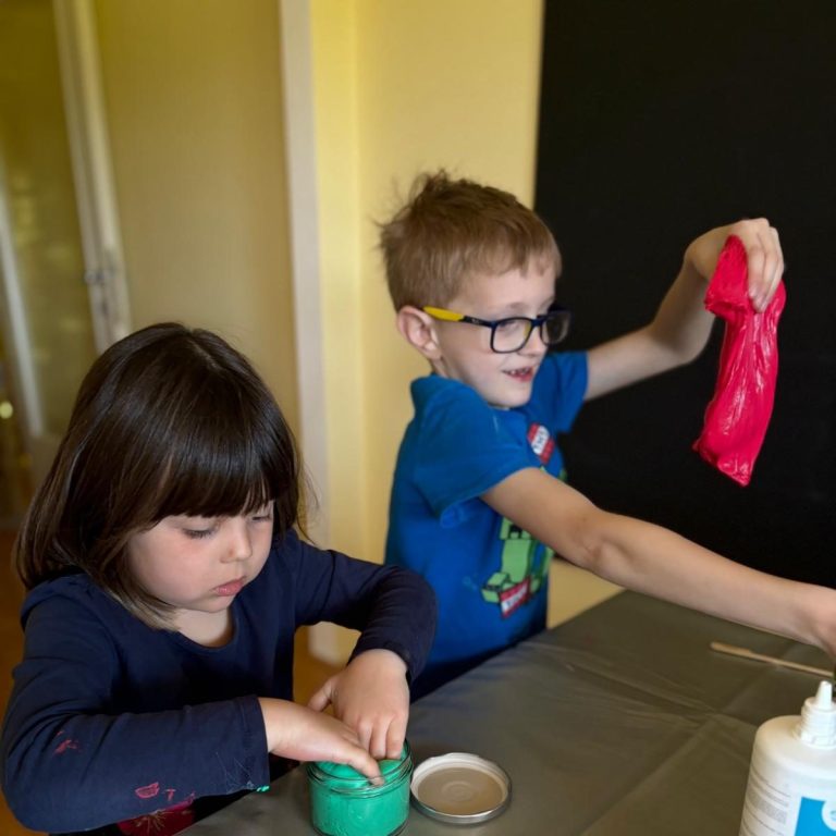 Die Kinder machen ihren eigenen Slime. Es gibt verschiedene zur Auswahl, Galaxy-Slime, Fluffy-Slime etc... .